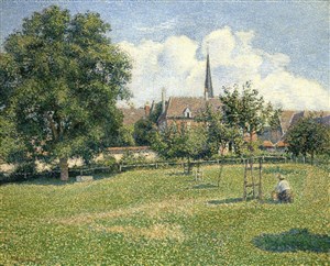 Adepte quelque temps du Néo-Impressionnisme, courant impulsé par Seurat et Signac, de 20 ans ses cadets, reposant sur l'usage de la féerie coloré des couleurs purs Pissarro renonce bientôt à cette technique trop méticuleuse pour revenir à la spontanéité impressionniste et réaliser le bouquet final d'une peinture vouée à l'expression du bonheur.
