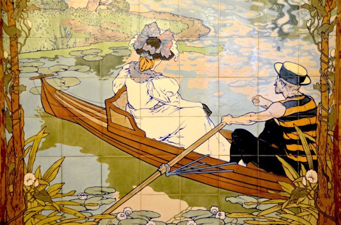 Enfin, nous prendrons notre goûter à la brasserie Mollard, défigurée par les repeints, les plâtres immondes et un décor frelaté des années 1920, mais une brasserie qui ressuscita un beau jour des années 1960, quand le patron eut l'idée d'enlever ce fard qui cachait un trésor de l'Art nouveau où rien ne manque au décor 1900.