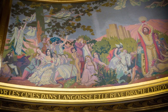 Vue de la salle depuis la corbeille et le 2nd balcon : Peinture du plafond de Maurice Denis