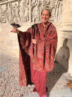 Guidés par l'épouse du philosophe Ausone en costume, découvrez la douceur de vivre en Aquitaine à l'époque romaine, au IVe siècle.