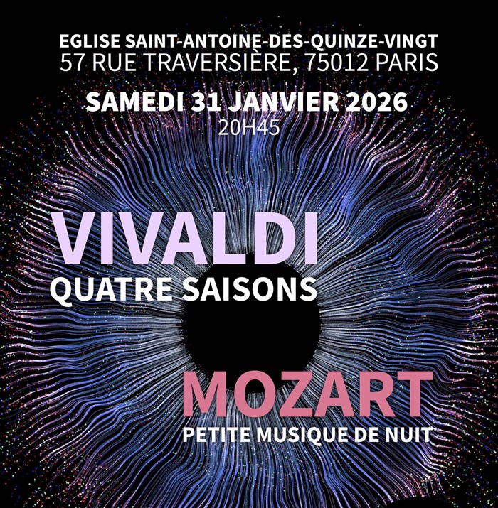 Découvre Vivaldi Mozart : L'Expérience Paris Virtuosi, qui fait partie de notre sélection d’événements de type Musique classique et qui se tient ici : Église Saint-Antoine des Quinze Vingts -