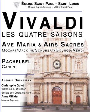 Que dire ? C'est beau, émouvant, intimiste car c'est dans l'église St Paul St Louis. Un rendu de son bluffant. Des musiciens et cantatrice qui n'ont rien à envier aux grandes stars. J'ai passé quatre saisons émouvantes et vécu des Ave Maria de toute beauté. Merci.