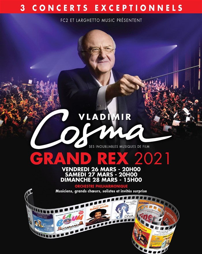 Vladimir Cosma, le " compositeur aux 500 musiques de films " sera sur la scène du Grand Rex à Paris pour trois concerts évènement les 26, 27 et 28 mars 2021.