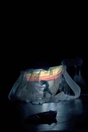 Grâce à un dispositif plastique mobile et évolutif, la scénographie crée un espace en mouvement, parfois vif, léger et transparent, ou au contraire lourd et dangereux.