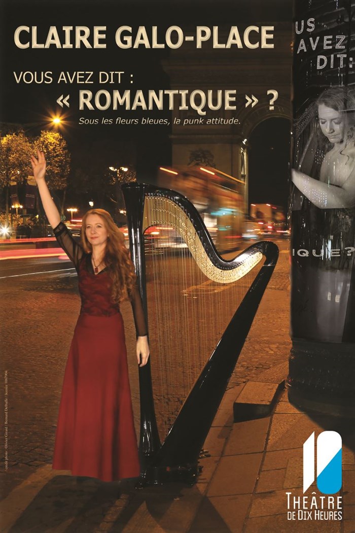"C'est moi, Claire Galo-Place. Blonde, cheveux longs, harpiste. Je colle tellement bien au cliché que j'en suis presque un pléonasme. Quand j'évoque mon métier, je ne coupe pas à l'éternel : " la harpe ? C'est tellement délicat, tellement romantique ! ", suivi du fameux regard extatique avec option tête penchée sur le côté. J'aurais pu changer de look. J'ai préféré réunir mes amis Robert (Schumann), Johannes (Brahms), Niccolo (Paganini) et quelques autres pour vous montrer le vrai visage de la harpe et de la musique romantique. "