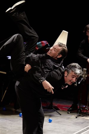 Accompagnés au piano par Roger Pouly, Eric Perez et Eric Vignau nous invitent à une randonnée burlesque, décalée et grave à travers des artistes chahutée par l'histoire et qui, grâce à la chanson, ont fait évoluer la pensée du XXème siècle. Kurt Weill, Hans Eisler, Henri-Georges Clouzot, Prévert, Francis Blanche, Boris Vian, Jean Cocteau, Jean Genet,... pour arriver tout naturellement à Gainsbourg.