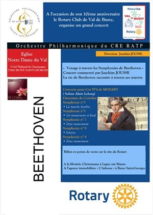 L’événement Voyage à travers les symphonies de Beethoven de type Musique classique, organisé ici : Eglise Notre-Dame du Val - Bussy Saint-Georges, n'est plus disponible à la vente.