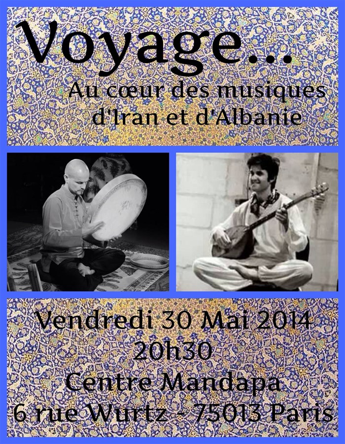 L’événement Voyage... Au coeur des musiques d'Iran et d'Albanie de type Musique du monde, organisé ici :