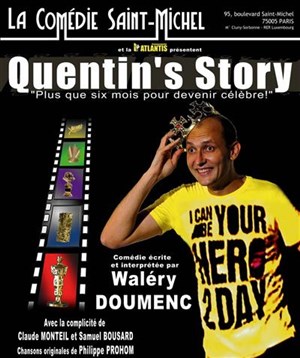 Seul en scène incisif et désopilant, Quentin's Story retrace le quotidien pas si facile d'un comédien raté qui, de petits boulots en grosses galères, d'auditions loufoques en castings désolants, tente désespérément de percer dans un milieu plus qu'hostileDans six mois, Quentin aura trente-cinq ans, l'âge limite qu'il s'est fixé pour sortir de l'anonymat: il l'a promis à son banquier, las de lui accorder découvert sur découvert. Il l'a promis à sa fiancée, lasse d'attendre enfin une vie de couple normale.