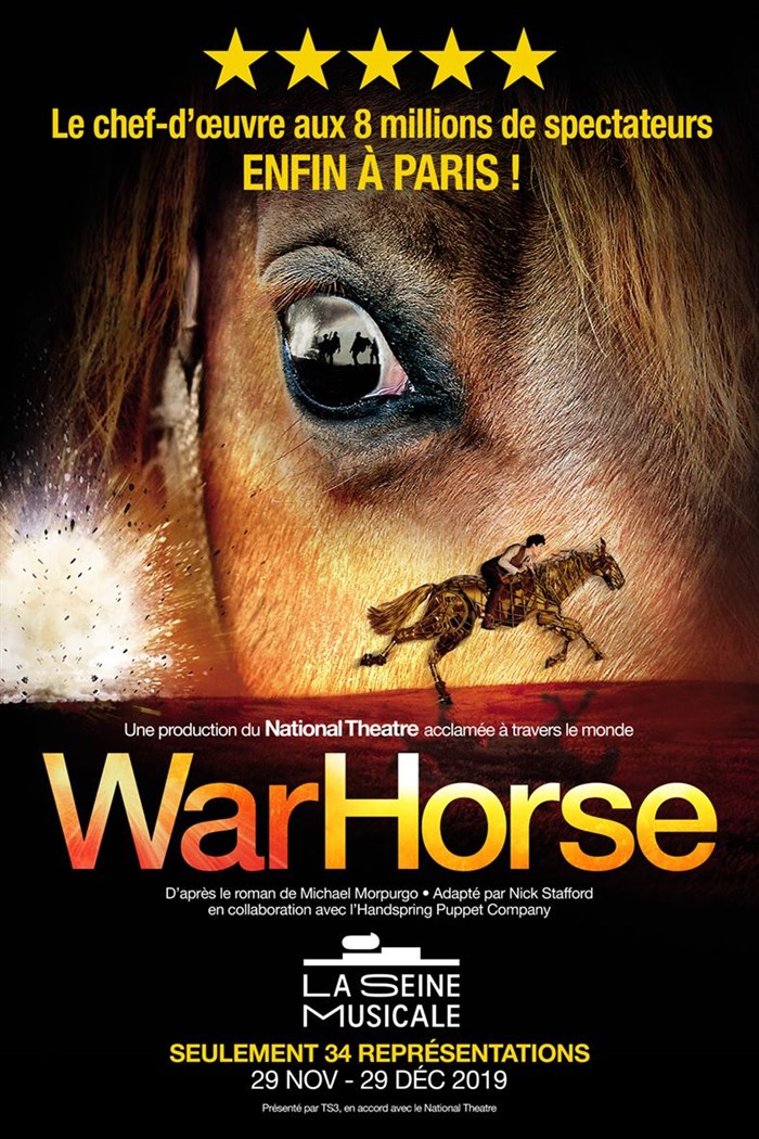 Lauréat de plus de 25 prix internationaux, dont le Tony Award® de la "Meilleure Pièce de Broadway" en 2011, War Horse, spectacle événement mis en scène par Marianne Elliott et Tom Morris est présenté par Thierry Suc pour la première fois en France.