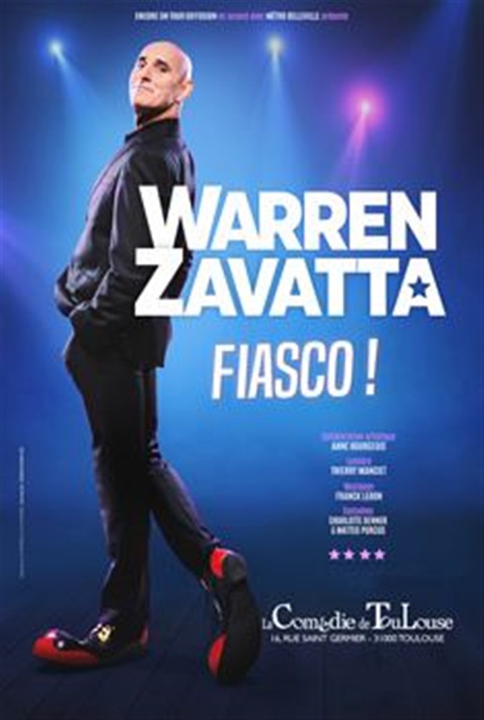 Après plus de mille représentations de son premier spectacle " Ce soir dans votre ville ", Warren Zavatta récidive sur les planches avec " Fiasco " où il continue de nous raconter l'histoire de sa vie, du succès à la traversée du désert, de l'ISF au RSA...