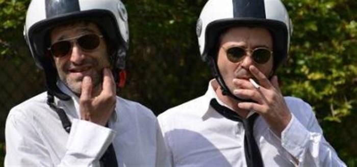 Derrière ce titre manifeste, deux multi-instrumentistes à la dégaine surprenante: grosse caisse et caisse claire aux pieds, cymbale frappée à grands coups de casques de mobylette, guitare, harmonica, sax...