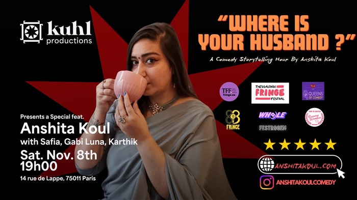 Join us for a Kuhl Comedy special headlining award-winning comic Anshita Koul for her European Tour "Where's Your Husband?". Featuring local acts.