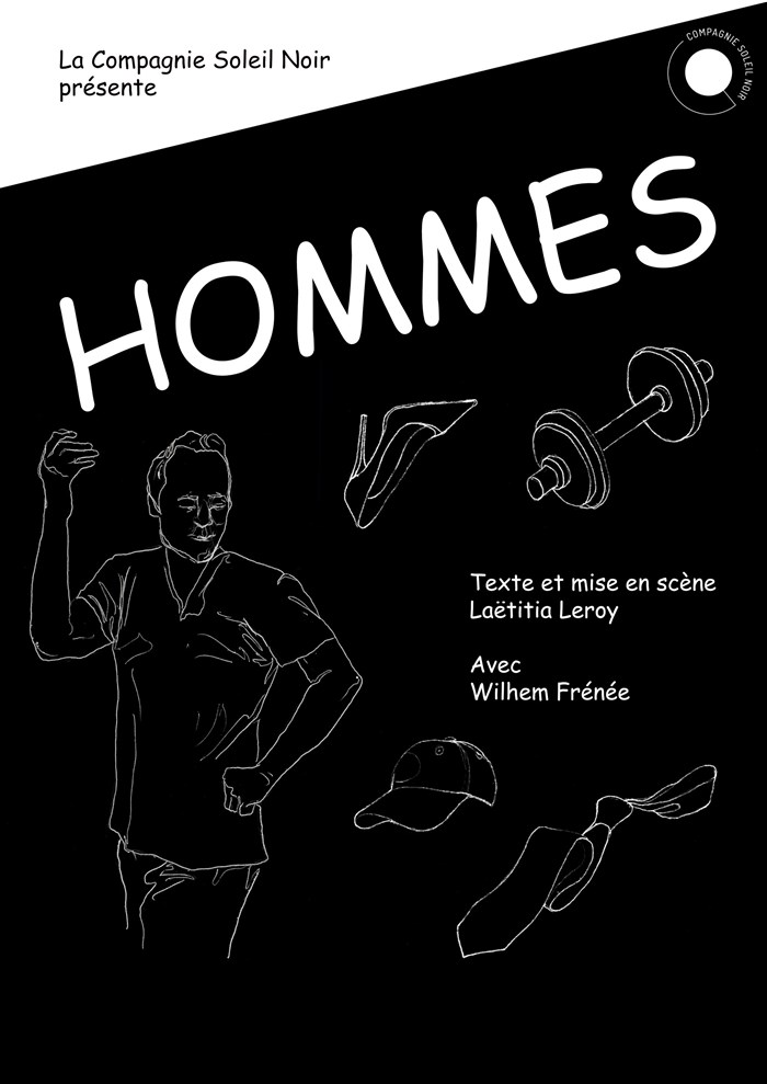 "Hommes" est un seul-en-scène qui présente sept personnages masculins à différents âges : un petit garçon qui ne comprend pas, un adolescent qui se cherche, un jeune adulte qui se sent seul, un homme qui se chagrine d'amour, un père qui a peur, un homme qui veut (re)vivre, un vieux qui n'est pas si con que ça.