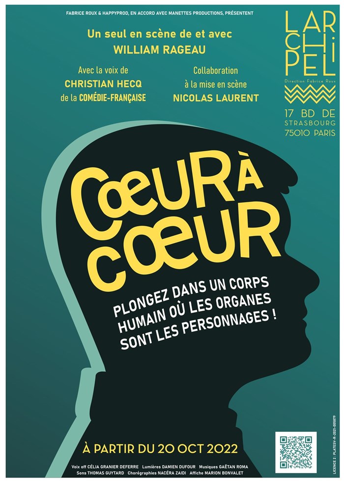 Dans l'univers du film d'animation "Vice-Versa" ou la série animée "Il était une fois la vie", Coeur à coeur est un seul en scène drôle et touchant qui se passe à l'intérieur d'un corps humain. Ce spectacle parle d'amitié, de résilience et d'amour !