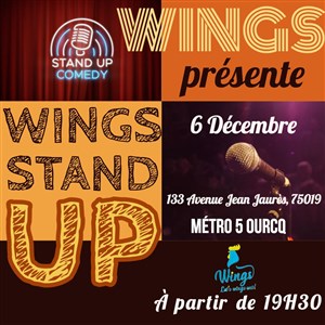 Accompagné de 7 comédiens de stand-up, Wings vous propose une soirée placée sous le signe de l'humour et de la street-food.