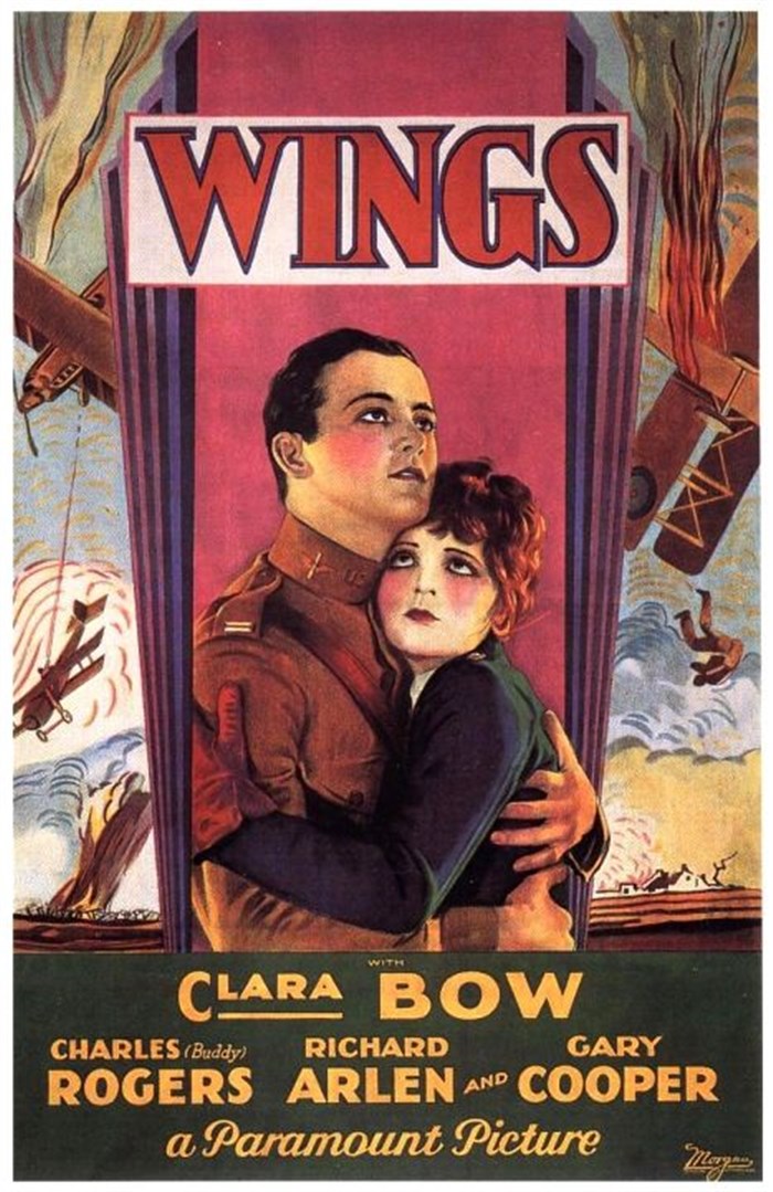 Les Ailes (Wings), de William Wellman, formidable film d'aviation et d'aventures avec Clara Bow, Charles Rogers, Richard Arlen, Jobyna Ralston et Gary Cooper, qui reçut l'Oscar du meilleur film en 1927, ressort en version restaurée à l'occasion du centenaire de la Grande Guerre.
