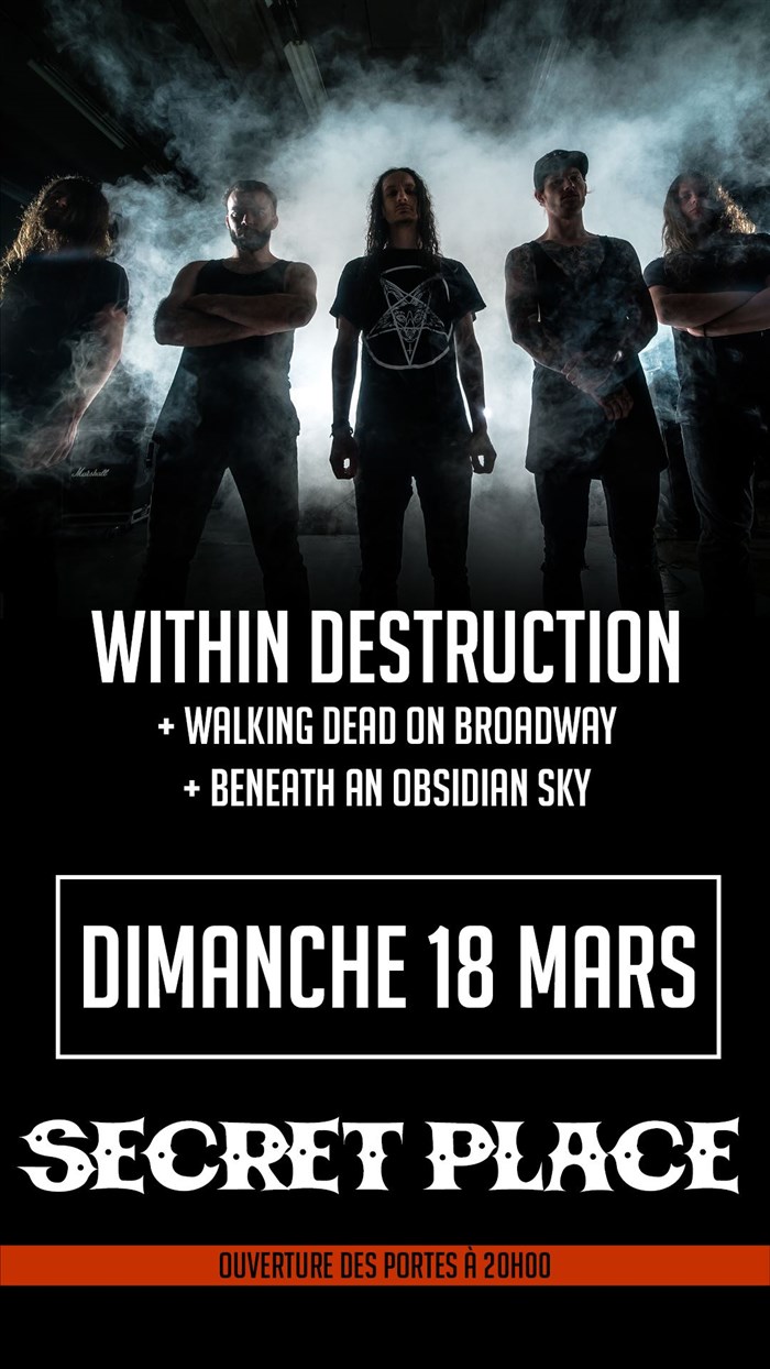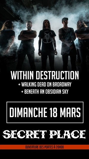 Tu veux savoir ce qu’ont pensé les spectateurs et la presse de cet événement : Within Destruction + Walking Dead On Broadway + Beneath An Obsidian Sky - Secret Place ? Découvre leurs avis éclairés et prépare-toi à vivre un moment d’exception à ton tour en réservant tes places !
