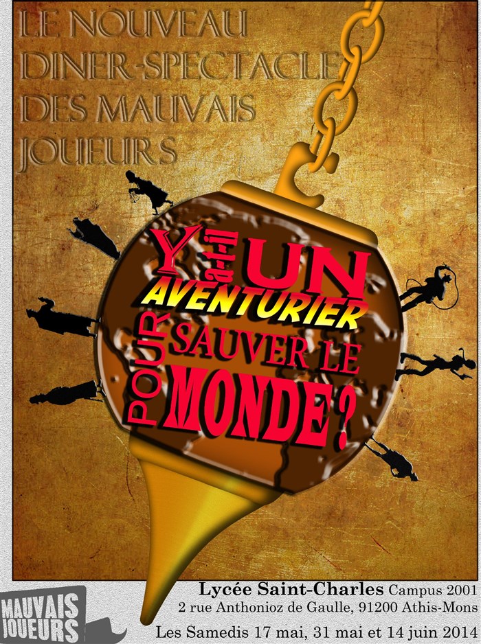 L’événement Y-a-t-il un aventurier pour sauver le monde ? | Dîner-spectacle de type Comédie, organisé ici :