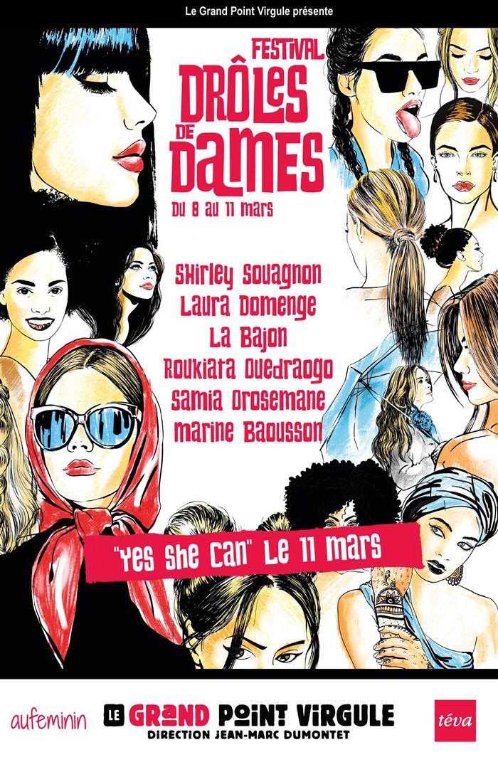 Dans le cadre du festival Drôles de Dames - Festival d'humour au féminin du 8 au 11 mars 2018 - Au Point Virgule, Grand Point Virgule, et Sentier des Halles.