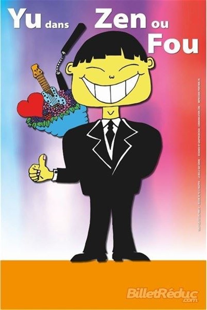 Nous avions eu le bonheur de voir Yu dans "crazy", spectacle d'improvisation et son humour second degré ainsi que ses jeux de mots nous avait beaucoup plu !! son spectacle Zen ou fou lui ressemble, des jeux de mots, des chansons folles, un humour pinçant, c'était un bon moment que je recommande !! bravo !!