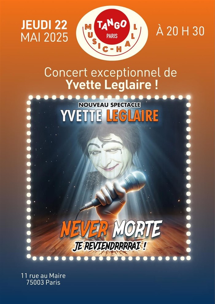 L’événement Yvette Leglaire dans Never morte de type Chanson Française, organisé ici : Le Tango Paris - Paris, n'est plus disponible à la vente.