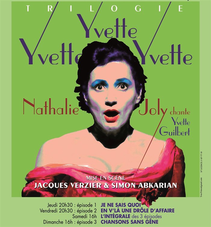 Pionnière du féminisme, précurseure d'une écriture féminine française moderne, Yvette Guilbert a inventé l'art du parlé chanté, ancêtre du rap. Reine du café-concert à la Belle Époque, l'amie de Freud immortalisée par Toulouse Lautrec est une grande figure de notre patrimoine. La comédienne et chanteuse Nathalie Joly explore depuis dix ans son oeuvre intemporelle, engagée, drôle, poétique, audacieuse et lui redonne toute sa symbolique contemporaine. Pour dire l'histoire de cette femme, il aura fallu trois spectacles. L'histoire d'une émancipation. De l'émancipation d'Yvette Guilbert à celle de ses héritières.