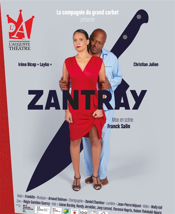 Zantray questionne la part de violence logée au coeur de la famille, du couple et de chacun d'entre nous. C'est une comédie dramatique en un acte qui mêle la flamboyance de la langue créole à la fulgurance d'un humour au vitriol.