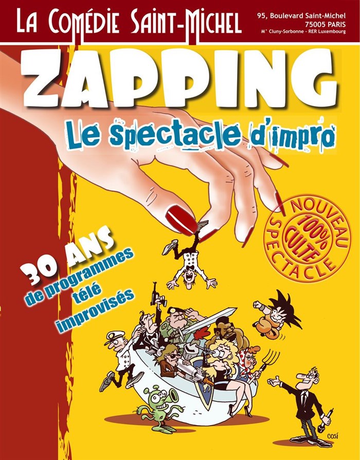 Films, séries, émissions, Zapping revisite en impro et avec brio les moments cultes qui ont marqué petits et grands écrans... L'équipe d'improvisateurs jongle avec dextérité sur les thèmes imposés par les spectateurs. Un moment de théâtre ultra sympa, à voir et à revoir !