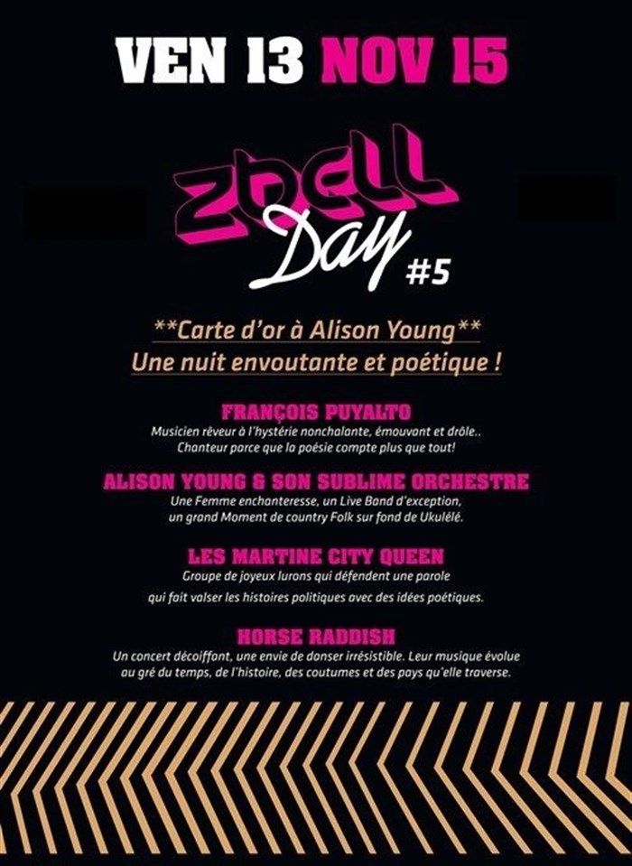 La 5ème édition de la Zbell Day propose ce vendredi 13 Novembre, une série de 4 concerts live mêlant artistes et musiciens d'exception pour un marathon musical à couper le souffle..