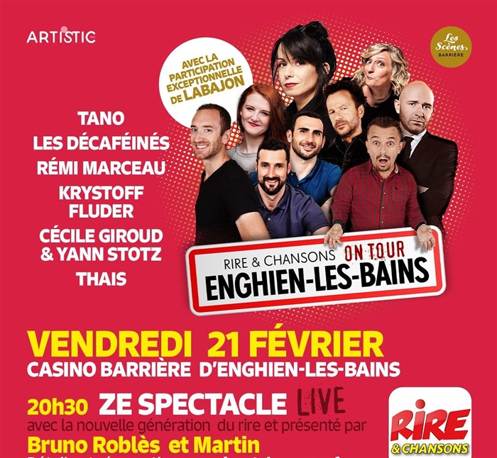 Votre billet de spectacle vous donne gratuitement accès au Casino Barrière d'Enghien-les-Bains à l'issue de la représentation. L'accès est réservé aux personnes majeures, non interdites de jeu et munies d'une pièce d'identité valide.