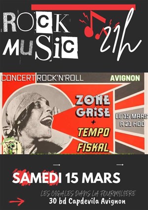 Zone Grise et Tempo Fiskal, deux groupes de reprises rock'n'roll, partagent la scène pour vous faire passer une soirée électrique.